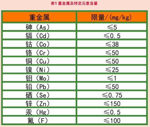 規(guī)定的重金屬及特定元素含量應(yīng)符合表1要求。