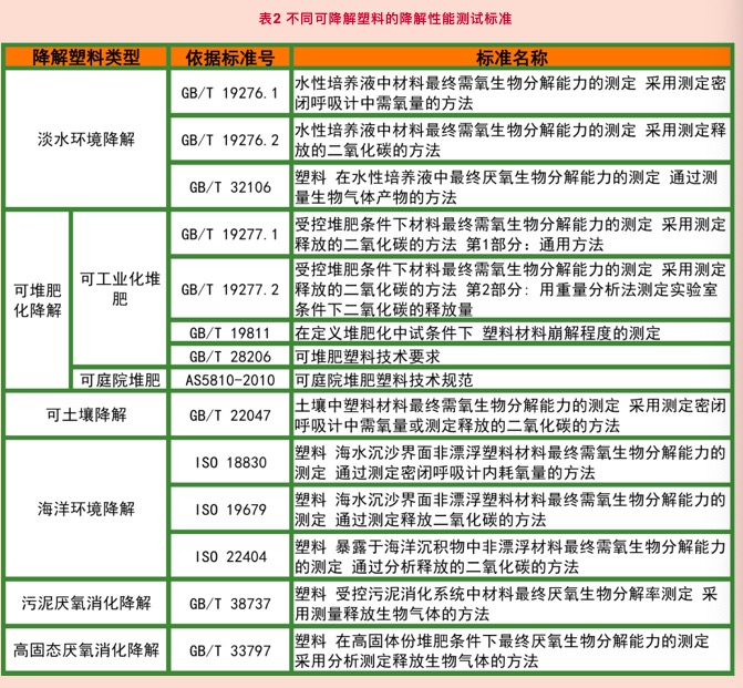 可降解塑料的可降解性能檢驗(yàn)方法按照降解環(huán)境條件進(jìn)行劃分,具體如表2所示。